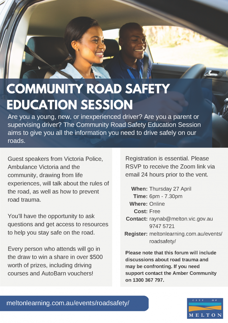 Please view the invitation letter from Melton City Council for an online Community Road Safety Education Session, being delivered on Thursday 27 April.