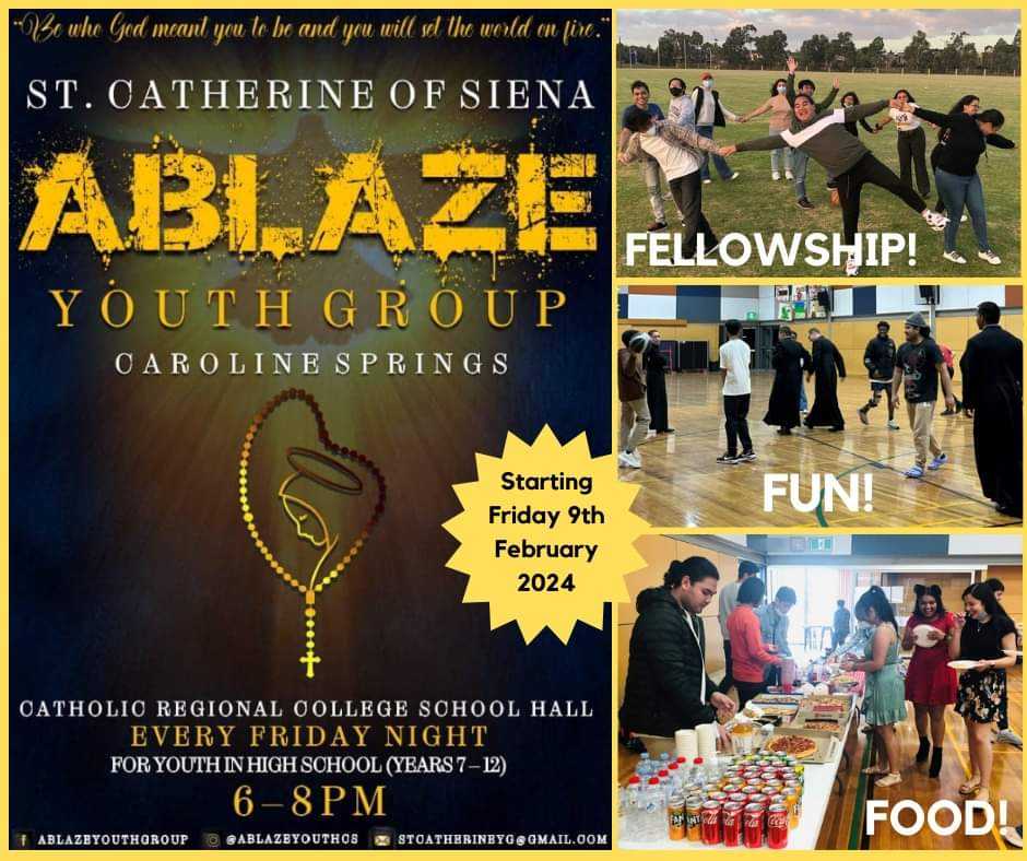 Ablaze Youth, is a community for High School students (in Years 7-12) to come together in a fun, safe and welcoming environment. It occurs every Friday night from 6-8pm in the College Hall. A wonderful opportunity if you are looking for a place for fellowship, fun and food.