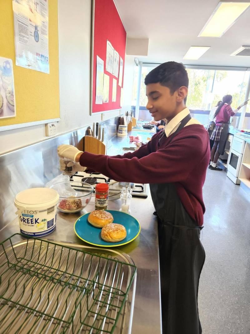 Finally, for our precious Year 7’s this was the first time they put their personal palates on the plate. They walked in all prepared and ready to produce a burger, “Grilled” beware they shouted as they walked into the kitchen.