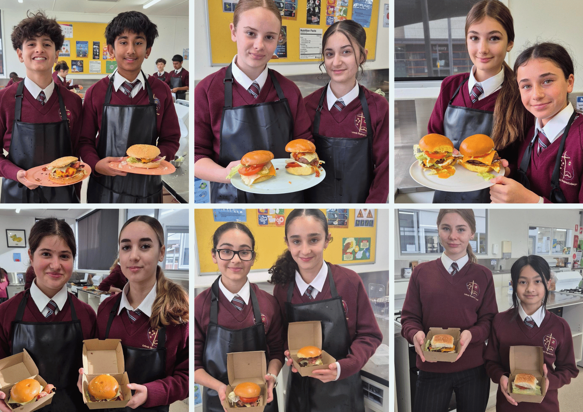 The planning part was experienced through researching which foods consisted of specific nutrients, as well as drawing up some designs for our burgers. Although planning the design may not have been a favourable part of the assessment, cooking the burgers definitely made up for it. There was a lot of chatter as we buzzed in excitement, all while ensuring that we were listening to the instructions. Once everyone got started, there was much concentration and efficiency that got put into making sure that the burgers were created correctly and with care. As a result of our great cooking skills, the burgers all came out looking absolutely delicious and we couldn’t wait to dig into them! Overall, the burger assessment was a huge highlight for many and now we can all go home and cook these burgers for our families, giving our beloved parents/carers a rest from preparing a meal.