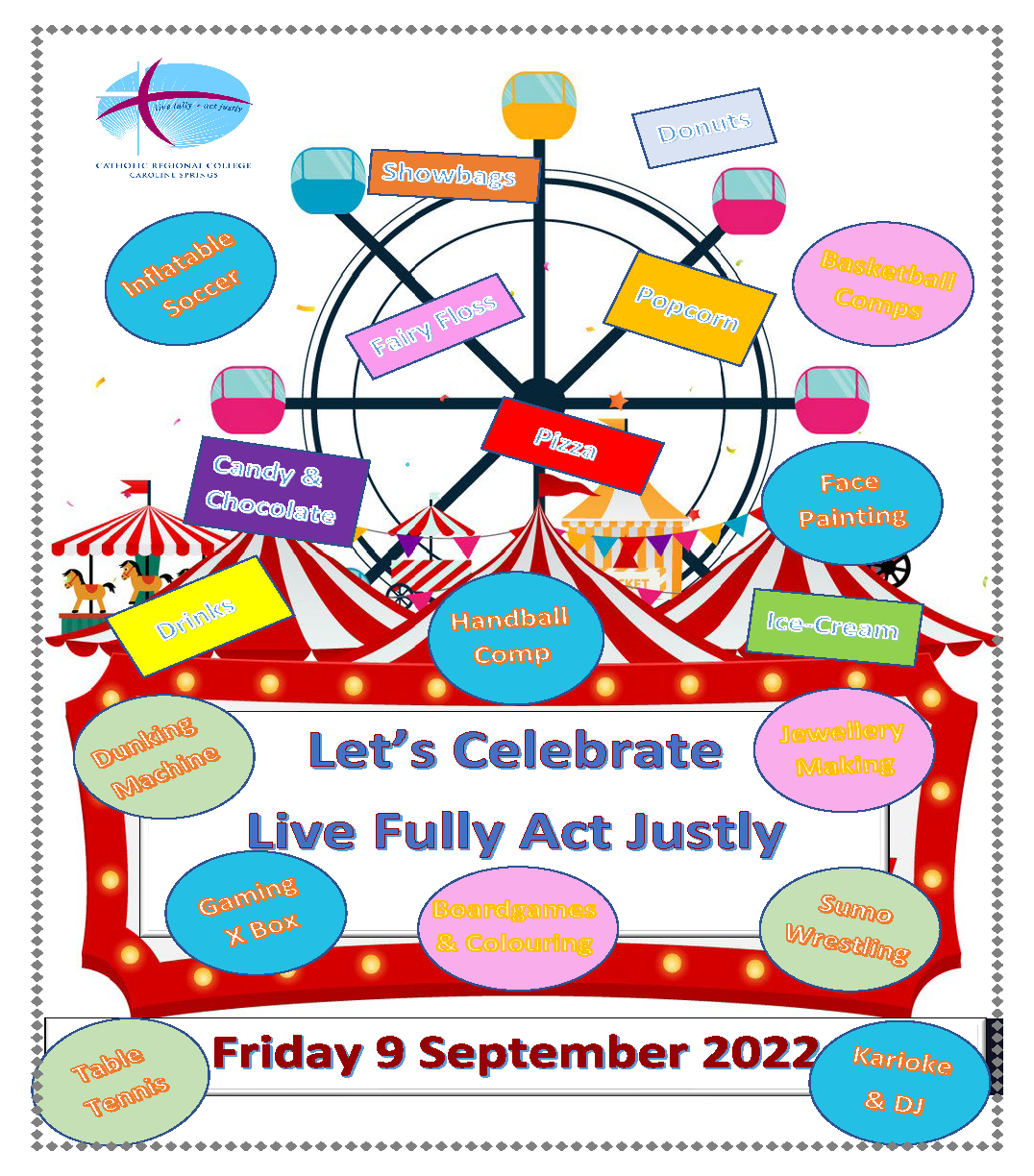 Catholic Regional College Caroline Springs is looking forward to celebrating our annual Live Fully Act Justly Day on Friday 9 September. Staff have been busy preparing food stalls and activities for all our students to enjoy on the day. A few things to remember: