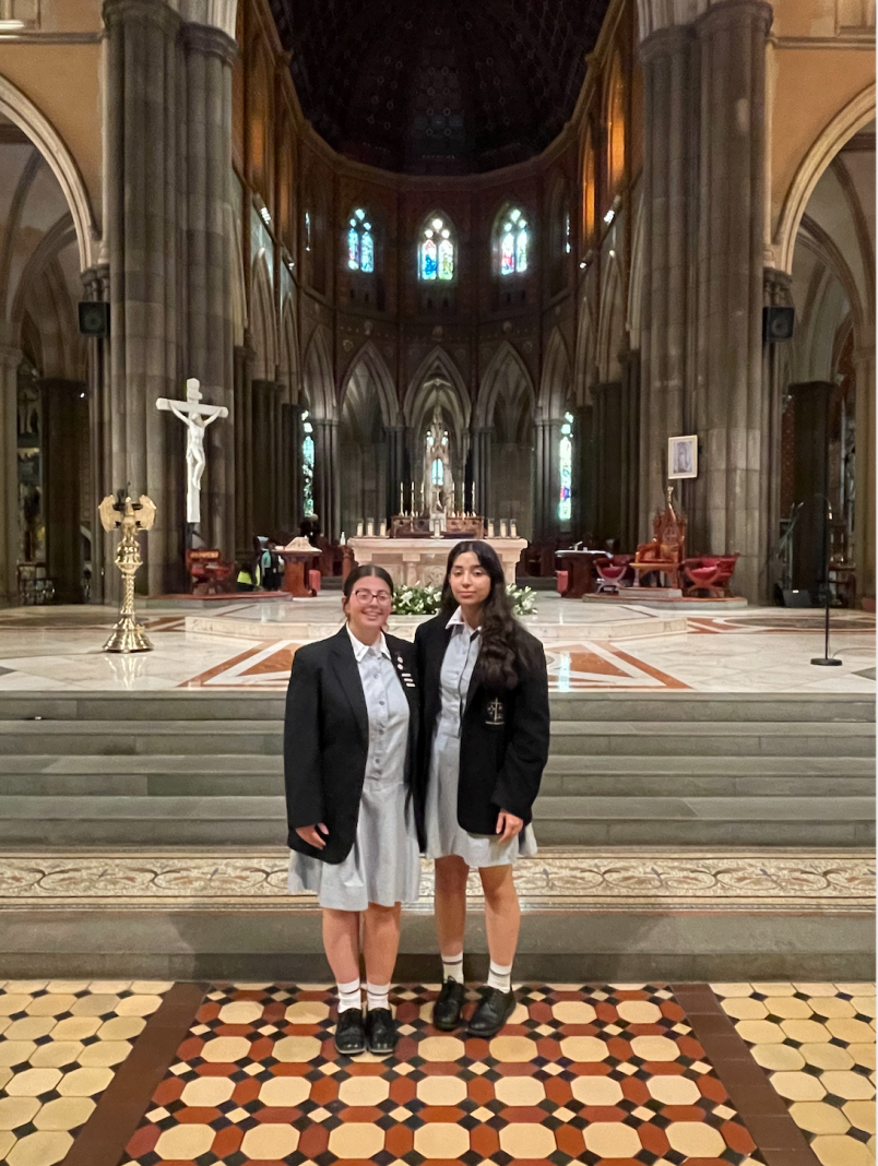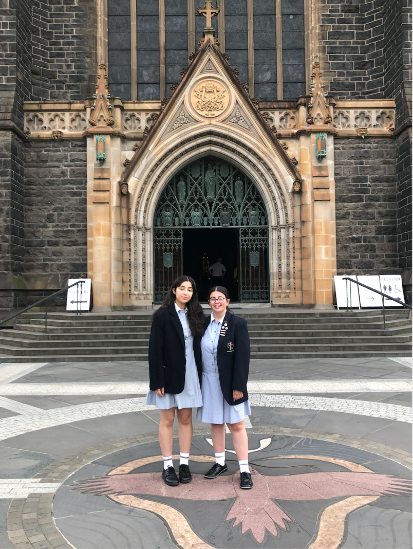 On Thursday 17 March, Meena Babawy and I, along with Mr Zammit, had the opportunity to visit St Patrick’s Cathedral in East Melbourne. We hopped on a train to the city and made our way to the annual Mass for Catholic Education Week on this feast of St Patrick. The architecture of the Cathedral was beautiful, and the high altar, bronze doors and stained windows never fail to show the true beauty of the 125-year-old Cathedral. We were lucky enough to take a photo with the Principal Celebrant and Archbishop of Melbourne, Peter A Comensoli. Guests from around Victoria were in attendance, such as Senators and MPs, Bishops and visiting Priests. The Mass was a wonderful occasion and opportunity to take part of and it was an honour to represent our College.