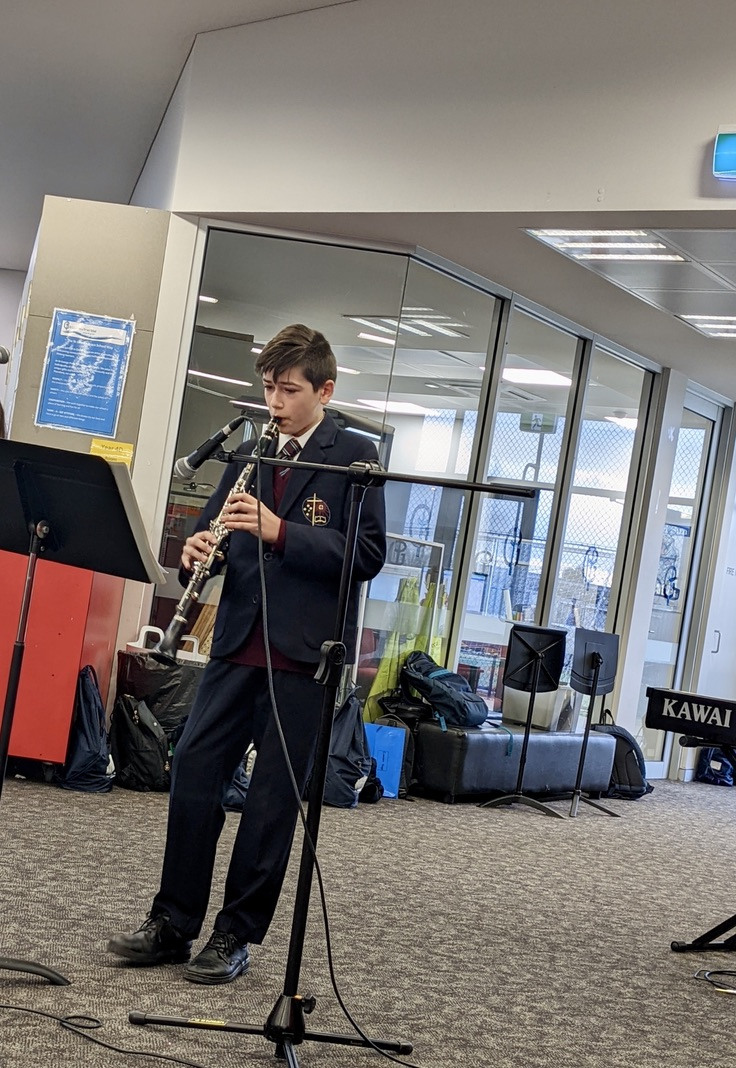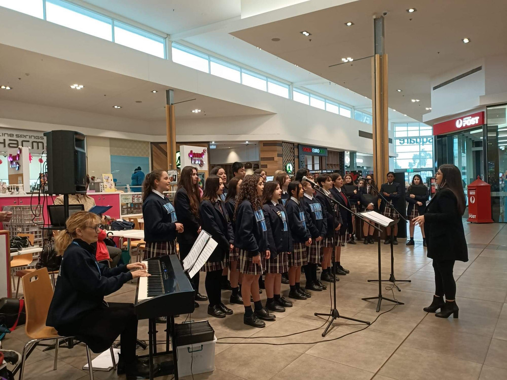 The past week has seen a positive surge of activity within our Music Department. Our inaugural ‘Mini Music Tour’ took place on Monday 30 May featuring both our Chamber and College Choirs, Beginner Concert Band, and instrumental/vocal soloists performing within the wider community. It was a privilege performing at St. George Preca Catholic Primary school, Emmaus Catholic Primary School, and CS Square. This mini tour was a fantastic opportunity for all students involved and allowed them to create positive relationships with their peers while sharing their love of music.