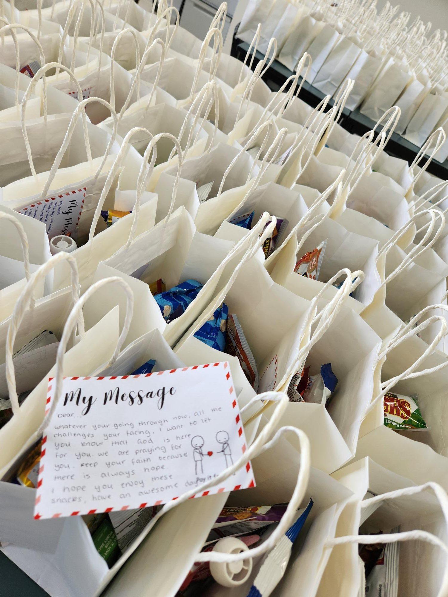 When carrying the needs and suffering of others, we stopped to think about people within our community who are less fortunate than ourselves. Each student was invited to write a message to a random individual, reminding them of the fact that there are people who care. The message was placed in a bag, with a few snacks, and later picked up by a local charity organisation – Paradise for Kids.