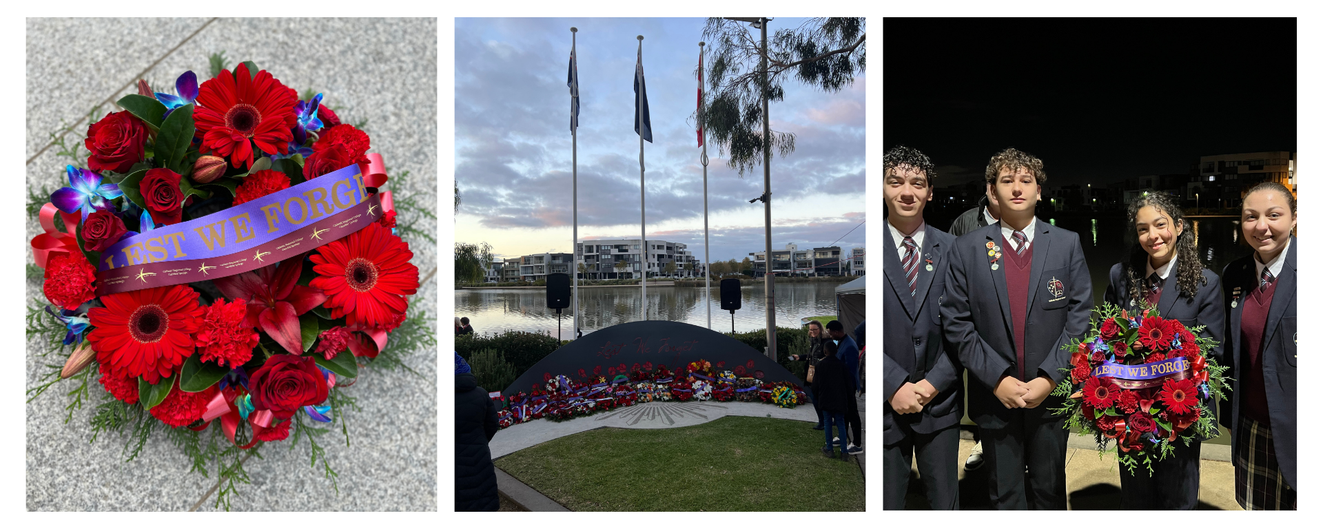 At Catholic Regional College Caroline Springs, we take great pride in instilling values of courage, compassion, and service within our students. Anzac Day provides a poignant opportunity for us to deepen our understanding of these values and honor the legacy of those who have gone before us. Our College Captain and Deputy Captains were actively involved in the Caroline Springs Anzac Day Dawn Service, laying a wreath at the War Memorial site on Lake Caroline.