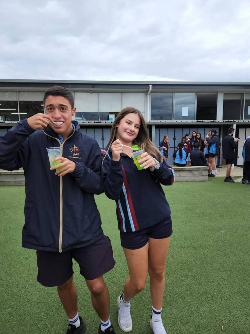 The team were at the gates bright and early to greet the rest of the students with fresh green apples and St Patrick’s day stickers, all with lively Irish tunes playing in the background to really get into the spirit of the day. At recess and lunch, green jelly cups were sold for $1 on the Hogan green and it was great to see so many students eager to try some. Overall, the day was an excellent way to celebrate St Patrick, and have a bit of fun as a student community.