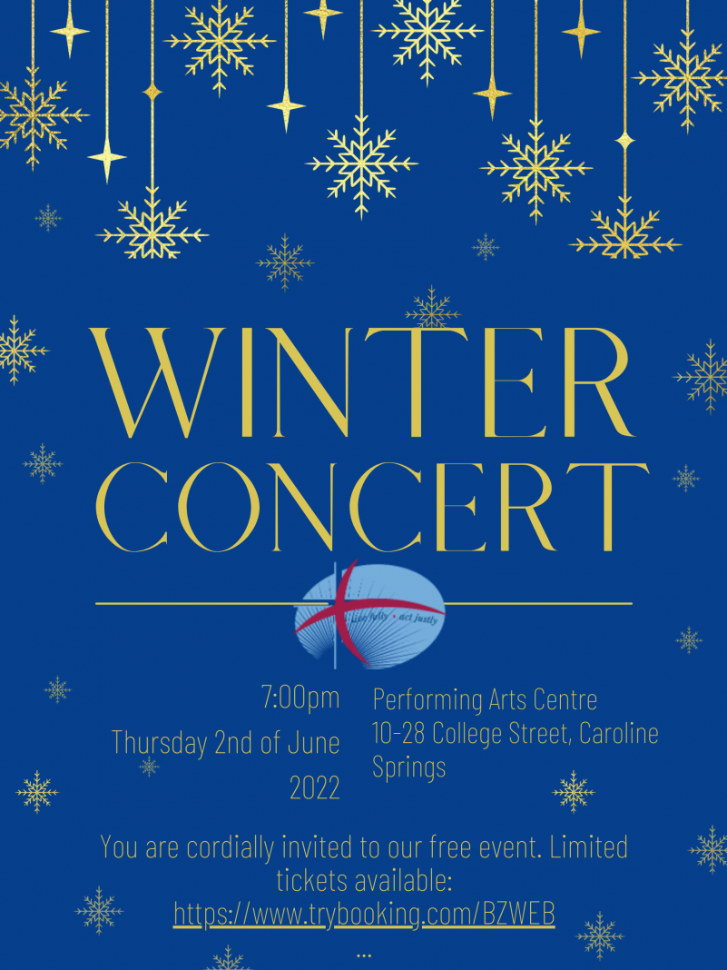 We will be holding our inaugural Winter Music Concert on Thursday 2 June in the Performing Arts Centre (PAC) starting at 7:00pm. This event will feature performances from the College Choir, Chamber Choir, School of Rock Bands and the first performance from the Beginner Concert Band.