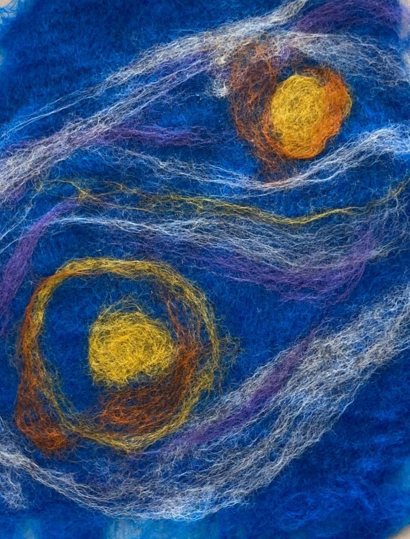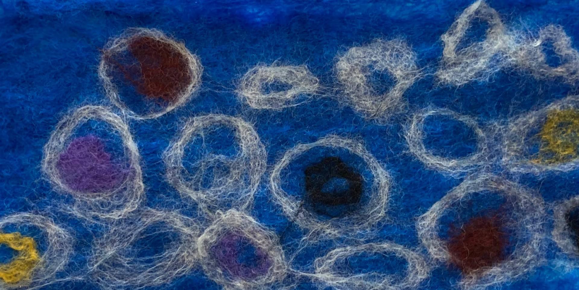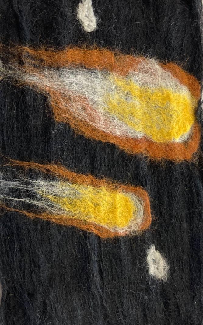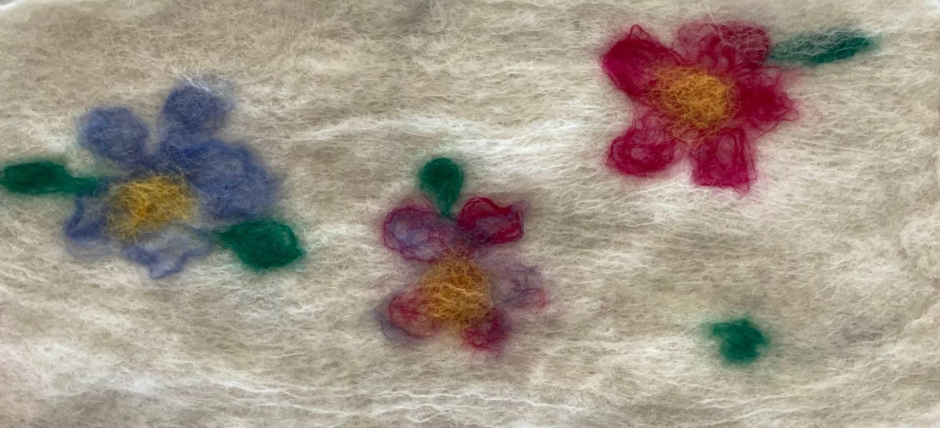 Students have used natural wool fibres to create samples of wet felting. As part of their textile exploration, they have developed skills and techniques used to manipulate, change, and embellish garments and textile products.