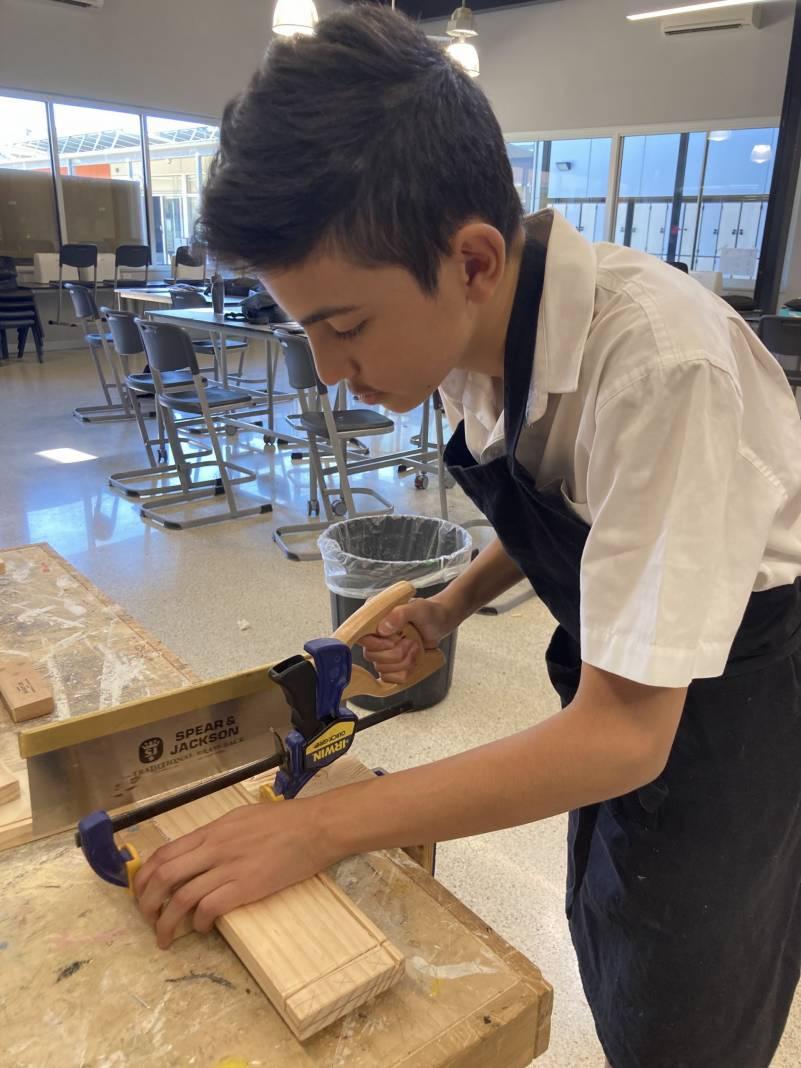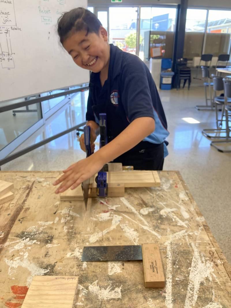 The students are learning how to cut and assemble wood with a focus on rebate joins and the correct, safe use of wood making tools. They will personalise their work with logos they have created using the design process. We are looking forward to seeing some great colourful finished designs soon!