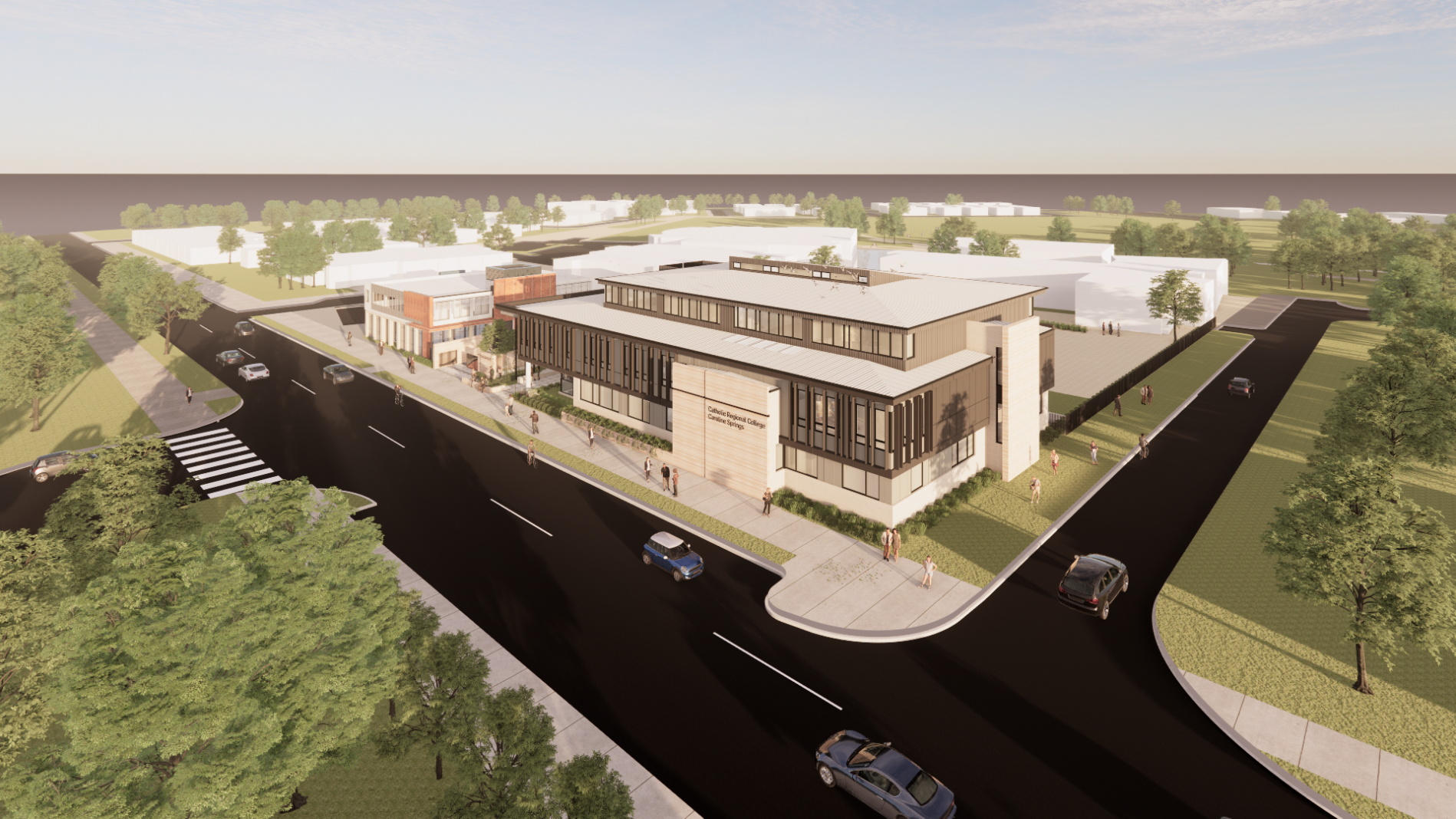 We are filled with excitement and anticipation as the commencement of construction on our new building has begun, with the demolition of the Hogan building, paving the way for the construction to begin. The new triple storey building will encompass modern classrooms, and versatile spaces designed to inspire creativity, collaboration, and innovation. The building will house a new reception, administration and finance office, two Food Technology rooms with an adjoining dining room, five Art rooms, 2 Music rooms and a recording studio, and five general purpose classrooms. There will also be a new staffroom and staff study, together with multiple new staff office spaces.