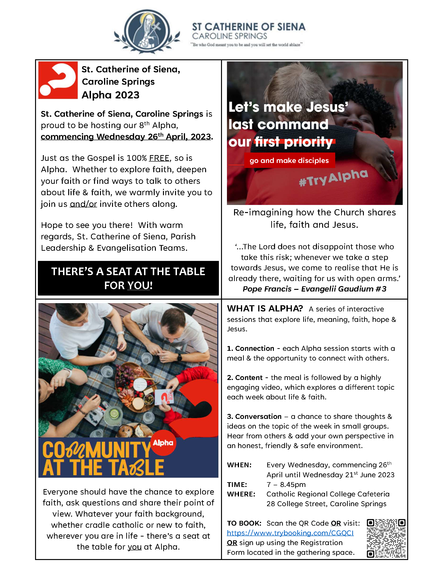 The College Newsletter will continue to be published in weeks 5 and 10 of each Term to highlight and capture detailed information pertaining to Catholic Regional College Caroline Springs.