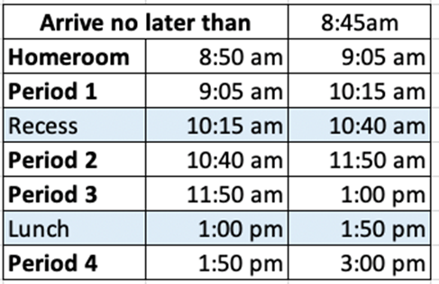 We thank staff, students and parents who completed the feedback survey on the four possible timetable options for 2023. We can now announce that based on the survey feedback the timetable for 2023 will be as follows: